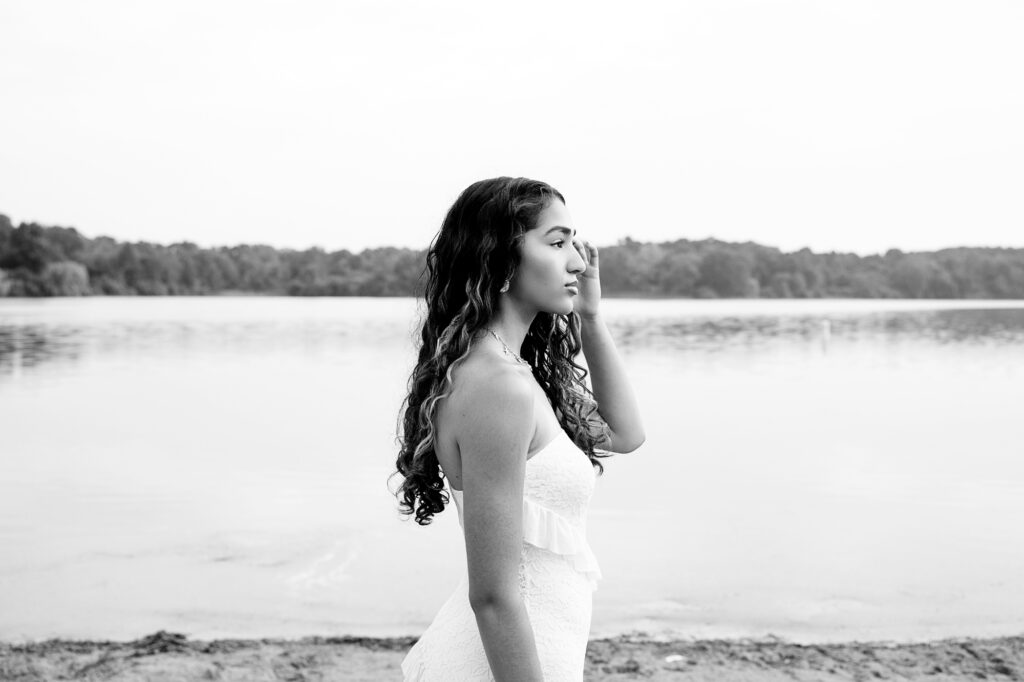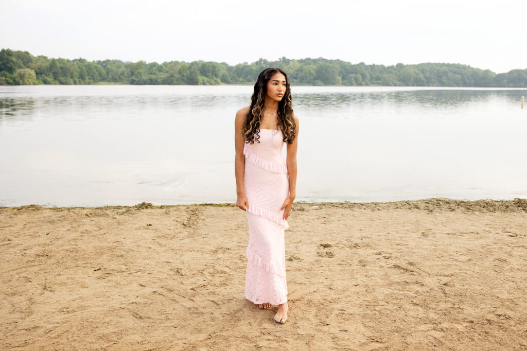 Christina wanted beach vibes for her senior portraits, so we headed to Island Lake Recreation Area and then popped over to Kensington Metro Park. My summer senior summer sessions are early in the morning so we pretty much had the beach to ourselves! And I love photographing on the beach. Both places are fun locations to wander around.